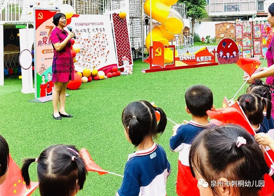 2021年7月1日,中国共产党成立100周年的伟大日子!泉州市刺桐幼儿园举行“声声祝福感党恩 礼赞百年颂党情”庆祝中国共产党成立100周年活动。活动在党支部书记黄阿香园长的主题讲话和庄严的升旗仪式中拉开序幕。