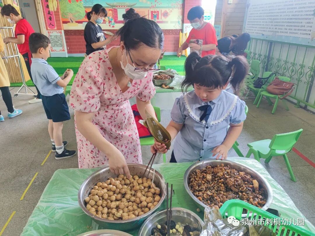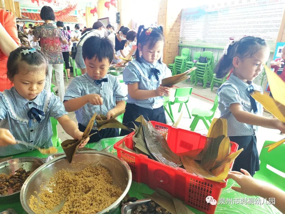体验民俗 安康过端午体验民俗 安康过端午 【我们的节日】 体验民俗 安康过端午 浓浓粽叶香, 悠悠端午情。 根根丝线连, 切切情意牵。 每年农历五月初五是中华民族传统佳节——端午节。在端午节即将到来之际,泉州市刺桐幼儿园积极贯彻中共泉州市委精神文明办《关于泉州市2021年“我们的节日·端午”主题活动的通知》的文件精神,以庆祝中国共产党成立100周年,传承中华优秀传统文化,弘扬闽南端午节日习俗为契机,开展主题为“体验民俗 安康过端午”的系列课程活动。 你们知道端午节的由来吗?瞧,泉州市刺桐幼儿园的小朋友身穿汉服,大方、自信地与小伙伴一起述说着“端午故事”,生动、感人的爱国故事,深深地感染着大家,爱国情怀油然而生。“五月节,扒龙船,大人囝仔哗哗滚。海面一排四只船……”活动室里传来了琅琅上口的闽南童谣《扒龙船》,甜美的童声传唱着经典的端午歌谣,传承优秀传统文化,喜迎端午节的到来。 为了过一个平安、健康的端午节,小朋友们积极参与劳动,清洗着公共游戏区的环境卫生,创造整洁优美的校园环境。根据端午节悬白艾、佩香囊等传统,崇福园区开展了“做香包送吉祥”活动,小小巧手将艾草等装入香包中,一个个艾草香包的芬芳扑鼻而来;大班的小朋友在老师的带领下,敲锣鼓、撑长杆艾旗、手提鲜花篮等,热闹地感受着闽南端午习俗“唆啰嗹”,孩子自发装扮成家婆、铺兵、旗手等角色,伴随着《采莲曲》,或挥舞艾草驱蚊防疫,或敲着大锣大鼓、手提香包等,为同伴送上祝福。学园深入发掘端午节民俗卫护生命健康的积极价值,开展爱国卫生宣传,助力全面战胜疫情。寄予每个小朋友更加健康、快乐地成长! 端午节的闽南民间习俗可多啦!有好吃的、好看的,还有好玩的。 来到崇福园区的架空层,小朋友在家长们的带领下有模有样地学习包粽子的方法,两片粽叶折叠成漏斗,放入少量米、加入香菇、双层肉、鹌鹑蛋等辅料,再加盖一层糯米,用绳子裹紧……不一会儿,粽子成形啦,小朋友露出了开心的笑脸!刺桐园区的生活坊内,小朋友热火朝天地做着端午节闽南特色小吃“煎堆”。亲子动手制作、品尝端午节传统美食,进一步感受、了解了端午节的习俗。 最热闹的地方要属大操场啦!小朋友两个一队,快速地划动着小浆,体验有趣的端午“划龙舟”游戏,旁边助威队员的加油声此起彼伏;在水池边,小朋友开心地玩着“抓鸭子”“捉泥鳅”,有趣、好玩的端午节民俗游戏,陪伴小朋友渡过了美好而欢乐的时光。 活动室里,小朋友专心地感受着民间艺术“做彩绳”“纸龙舟”,灵巧的小手,把五彩的丝线,编织成了漂亮的花绳;折一折、剪一剪,形态各异的龙舟就完成啦!在端午节里感受别样的民间艺术乐趣。 以“我们的节日·端午”为契机,泉州市刺桐幼儿园开展了形式多样、别具特色的端午节系列课程活动,营造浓厚的端午节节日氛围,通过让幼儿亲身体验、动手操作,带领孩子们领略了闽南端午优秀传统习俗,感受中华优秀传统文化的魅力,萌发幼儿爱党爱国爱乡的情感;以文化人,以文育人,家、园携手,很好地践行社会主义核心价值观,共创文明和谐校园。 END 文图 | 薛 瑾 各班教师 编辑 | 薛 瑾 复审 | 周清芳 终审| 黄阿香 |