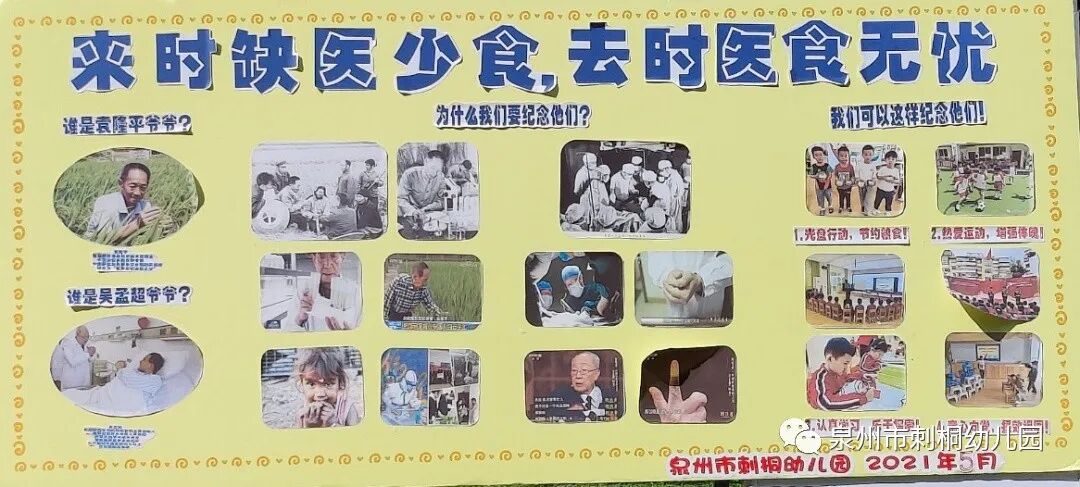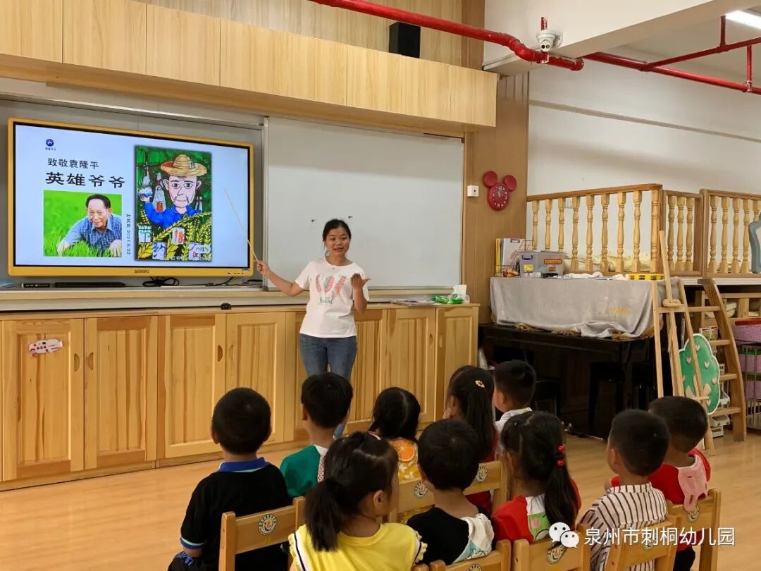 各班以此为契机通过观看视频、绘本分享、绘画创作等形式讲述袁隆平、吴孟超爷爷的故事、绘画我心中的国士英雄——袁隆平、吴孟超爷爷。通过生动的形式,鼓励幼儿向“国之脊梁”学习,永远铭记他们。