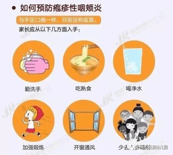疱疹性咽峡炎进入高发期,及早预防很重要!疱疹性咽峡炎是小儿常见的一种病毒性疾病,由肠道病毒引起,以急性发热咽痛、咽峡部黏膜小疱疹和浅表溃疡为特征。 多发季节 4-7月 传播途径 通过粪便、呼吸道飞沫、接触等途径传播。传染性强,传播快。 易感人群 1-7岁儿童易感,5岁以下幼儿高发。 病程周期 自限性疾病,一般病程4~6日,重者可至2周。 是否免疫 同一患儿可重复多次感染本病,系不同型病毒引起。 1 发热、咽峡部疱疹、咽痛、流涎、因咽痛影响进食,少数严重患者可并发高热惊厥、脑炎等。 2 潜伏期(3~5天):可无任何症状,但病毒会在体内大量复制。 前驱期(1~2天):突然持续高热或反复高热,可达38℃~40℃,并伴有咽喉红肿、食欲不振等症状。 水疱期(2~3天):除高烧外,口腔上腭粘膜出现水疱。 溃疡期(3~4天):低烧或退烧,水疱破溃形成为浅溃疡,因溃疡疼痛出现流口水甚至拒食现象。 疱疹性咽峡炎为良性疾病,病程较短,一段时间内可自愈。治疗以解热镇痛、补液等支持治疗为主。 注意口腔护理:嘴巴里有疱疹时会很疼,会影响进食。可以用凉水或冷水漱口,吃一些温凉的流质或较软不需要咀嚼的食物,鼓励患儿多喝水。 发热处理: 发热一般在2天内缓解,口腔黏膜损害5~6天可缓解。当体温超过38.5℃且精神状态不佳时,可口服退热药物降温。 ![]() 面对疾病 不必恐慌 疱疹性咽峡炎和手足口病两者都是由肠道病毒所引起的疾病,具有一定相关性,而且二者病毒间有许多重叠,导致症状与传播非常相似。二者口腔的咽部和软腭都会长疱疹,并会伴有不同程度的发热和咽痛。 疱疹性咽峡炎 对于这两个疾病的辨别,疱疹位置就是最好的区别方法:疱疹性咽峡炎的疱疹仅仅出现在口腔内。 手足口病 在口唇、手和脚,包括肛门周围,也会长有透明小水泡,关节部位还可见皮疹,咽痛症状不明显。 帮助孩子养成良好的卫生习惯 打喷嚏时用纸巾遮住口鼻,不与他人共用个人物品,避免与疑似疱疹性咽峡炎的病人接触。饭前便后及外出后要洗手、不喝生水、不吃生冷食物。 做好家庭卫生清洁工作 做好家庭卫生清洁工作。对于幼儿的玩具、生活用品和个人用品要及时清洗、消毒。在疱疹性咽峡炎流行期间,避免带孩子去人多的公共场合。每天开窗通风至少2~3次,每次不少于30分钟。 增强幼儿免疫力 增强幼儿免疫力。饮食上注意食谱的合理性,注重营养搭配;让孩子劳逸结合,保证充足的休息;让孩子经常参加室外活动,提高抵抗力。 理解和配合幼儿园工作 要理解和配合幼儿园工作。幼儿一旦出现疱疹性咽峡炎,要告知幼儿园,配合幼儿园共同做好防控工作,避免交叉感染。待患儿痊愈后,方可入园。 家长也要注意个人卫生 家长也要注意个人卫生。成人接触了疱疹性咽峡炎患者后,虽然没有患病症状,却容易携带该病毒并传染给孩子。 |