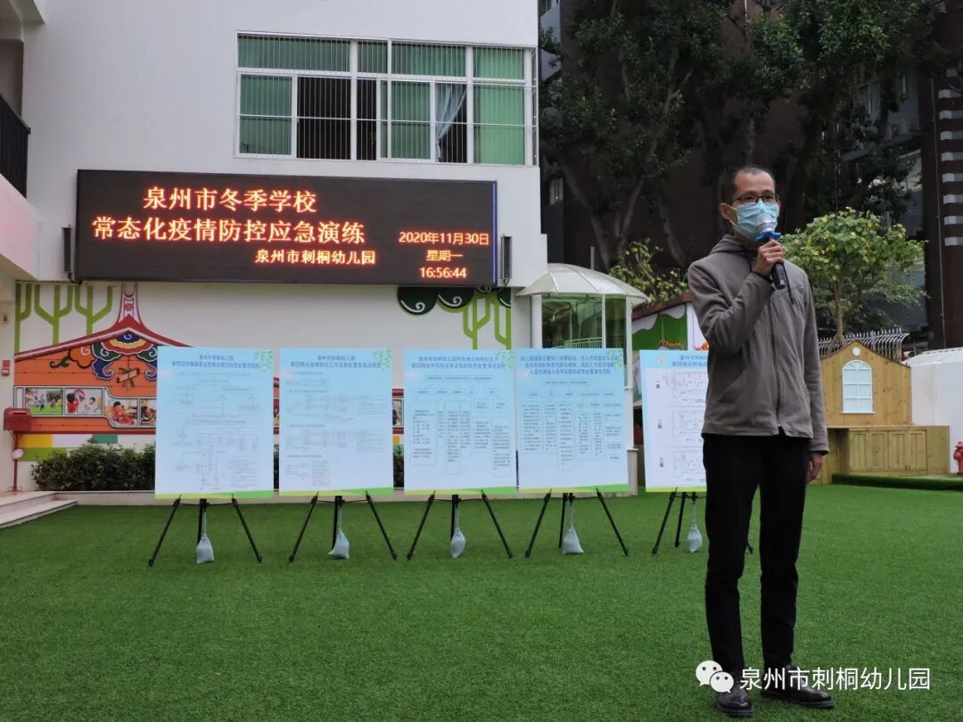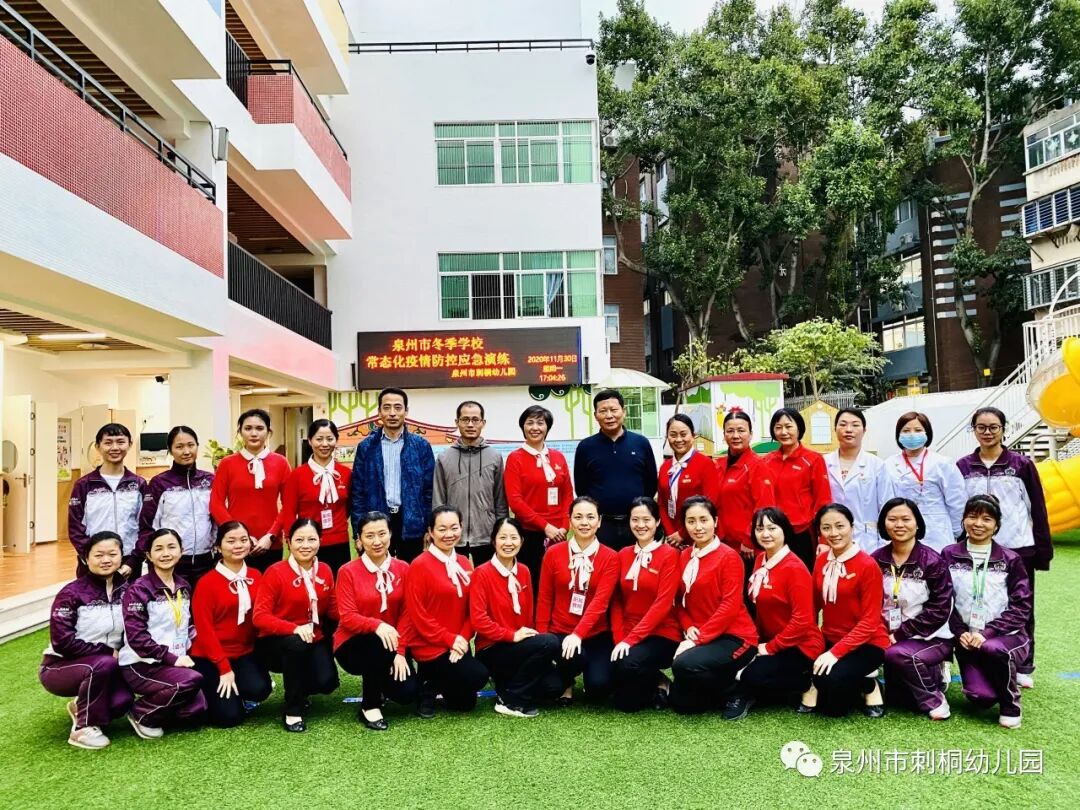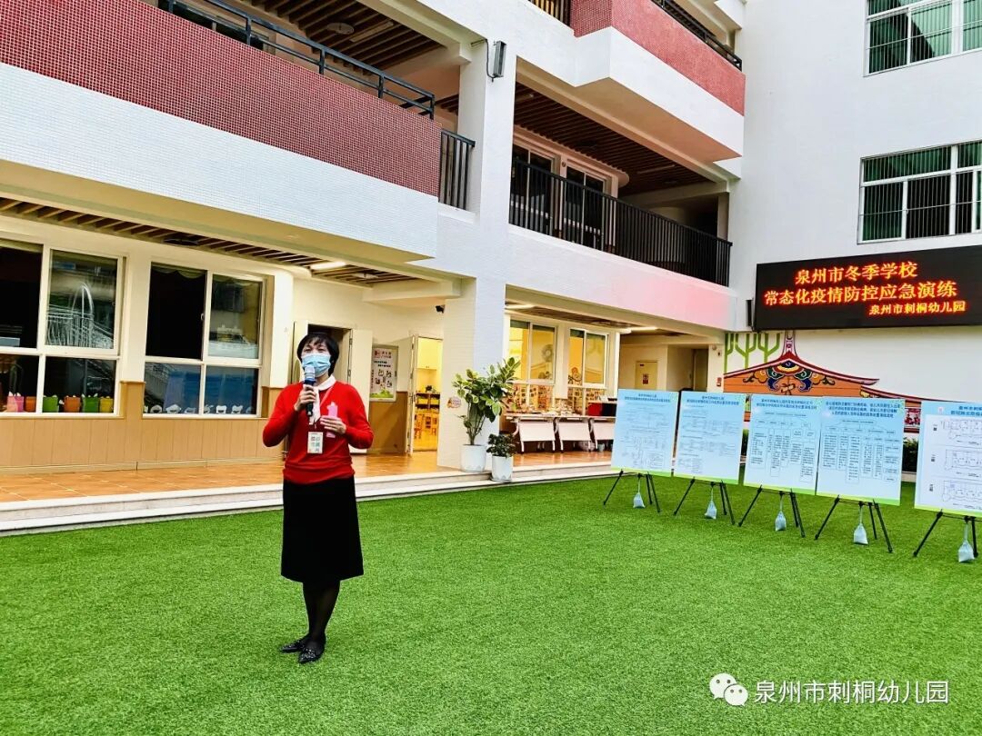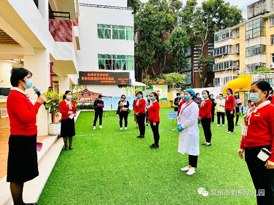 根据省、市防控新冠肺炎疫情应急指挥部工作的部署要求:毫不放松抓紧抓实抓细学校常态化疫情防控各项工作,实现校园疫情“早发现、早防范、早处置”,切实保障广大师生身体健康和生命安全,泉州市教育局于11月30日开展了冬季学校常态化疫情防控应急演练现场观摩活动。泉州市刺桐幼儿园作为本次活动幼儿园学段的演练专场,按照泉州市教育系统新型冠状病毒感染的肺炎疫情防控工作领导小组办公室的要求,重点展示了三个情景的演练。泉州市教育局体卫艺语科科长郑东伟、三级主任科员宋世杰;各县(市、区)教育局分管领导、负责卫生工作干部;市直幼儿园分管卫生工作校领导、校医等参加本次活动。